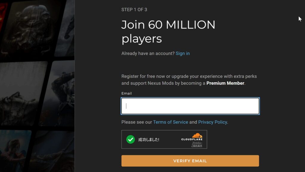 ここからは、Nexus Modへの登録方法を画像付きで説明していきますね。