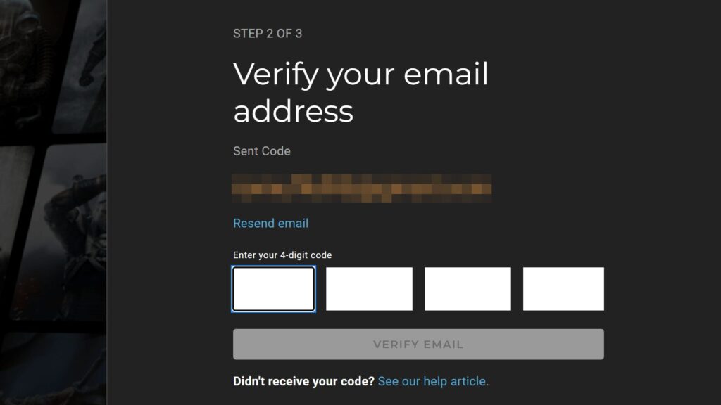 上で入力したメールアドレスに、Nexus Modsから認証番号4ケタの書いたメールが届くので、上の画面で入力して「VERIFY EMAL」をクリック。ちなみにこの時、半角数字で入力しないと、先に進めないので注意してください。