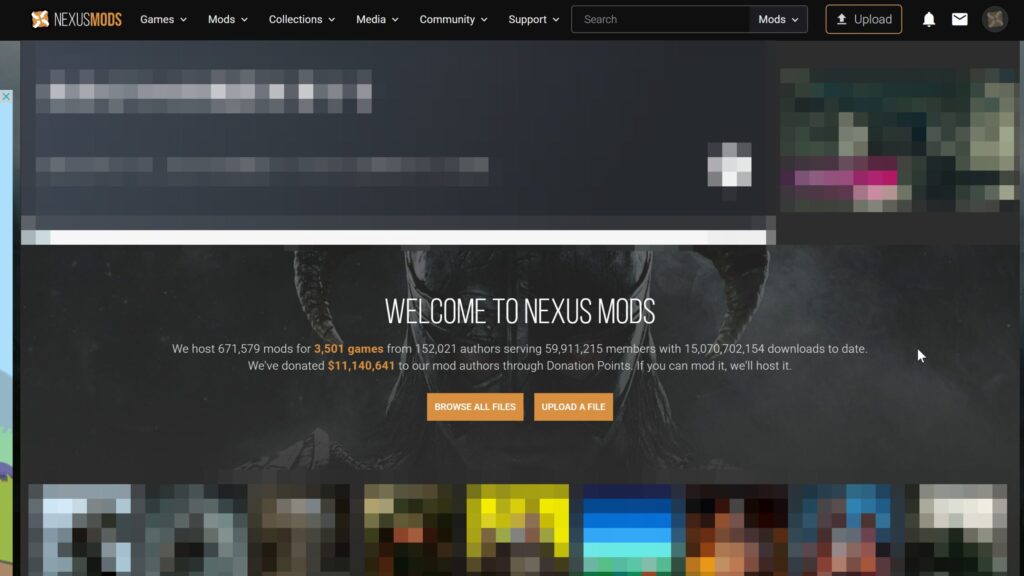 Nexus Modsは、PCゲーム向けのMODを配布・管理する最大手のサイトです。例えば以下のようなゲームのMODが豊富に揃っています。