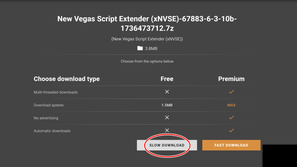 この画面になります。プレミアム会員でない限りは、グレーのバナーの「Slow Download」をクリック。