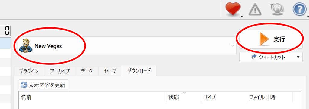赤丸の部分が「New Vegas」となっていることを確認して、右の「実行」をクリック。