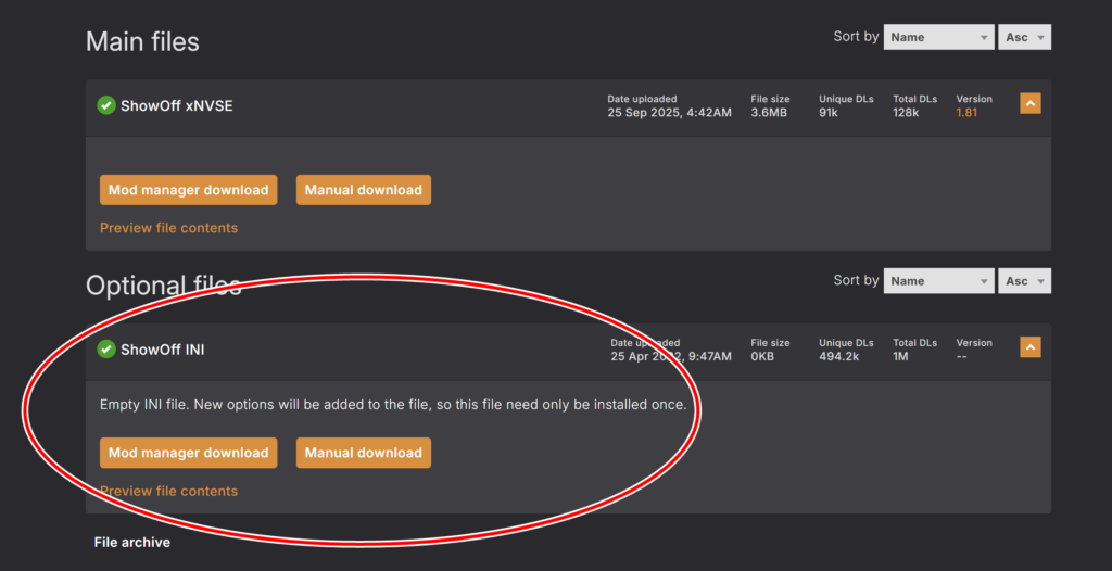 Optional filesの「ShowOff INI」も忘れずにダウンロードしましょう。