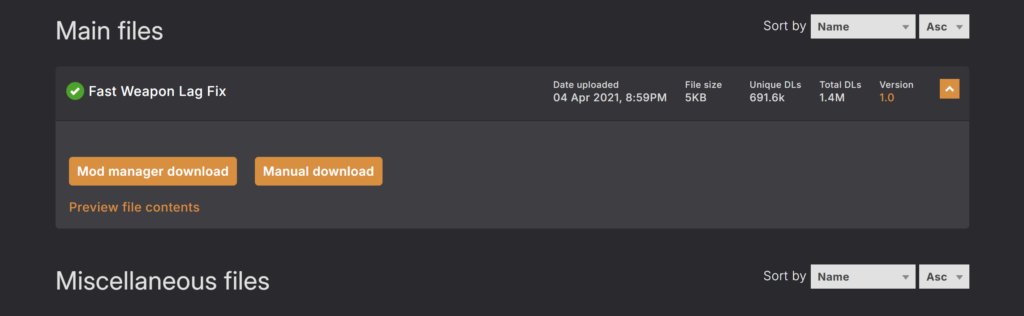 Main filesでは「Fast Weapon Lag Fix」となっていますが、気にせずダウンロードしてください。