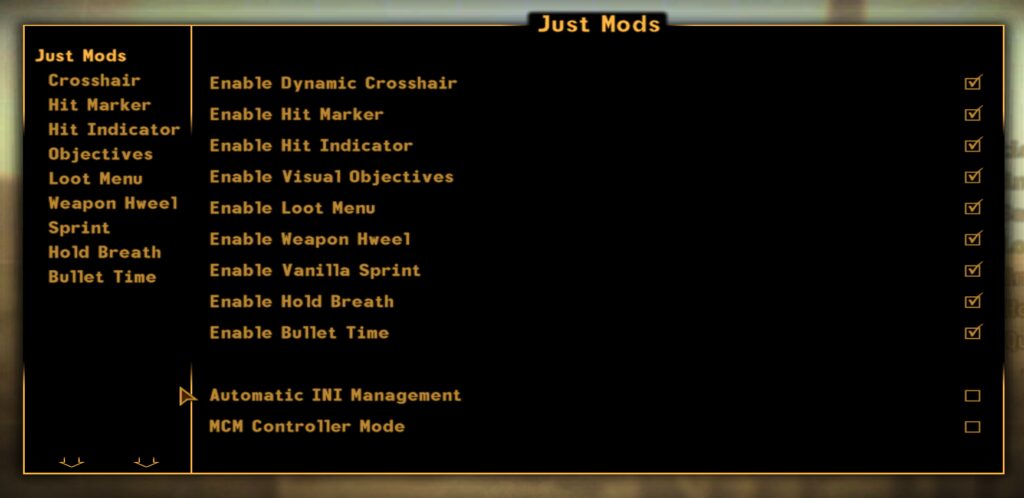 「Just Assorted Mods」は、FNVの操作感を、最新のFPSゲームのように快適にするModパックです。