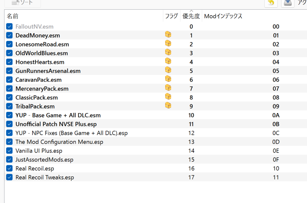 プラグインの項目は以下のようになっているはずです。違う場合は、ドラッグ&ドロップでロードオーダーを変えましょう。